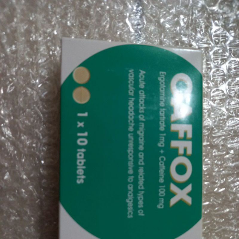 Cafergot adalah ubat yang sinonim dengan pesakit migraine. Salam sejahtera terima kasih atas soalan yang dituju. Caffox is a medication that contains ergotamine and caffeine.