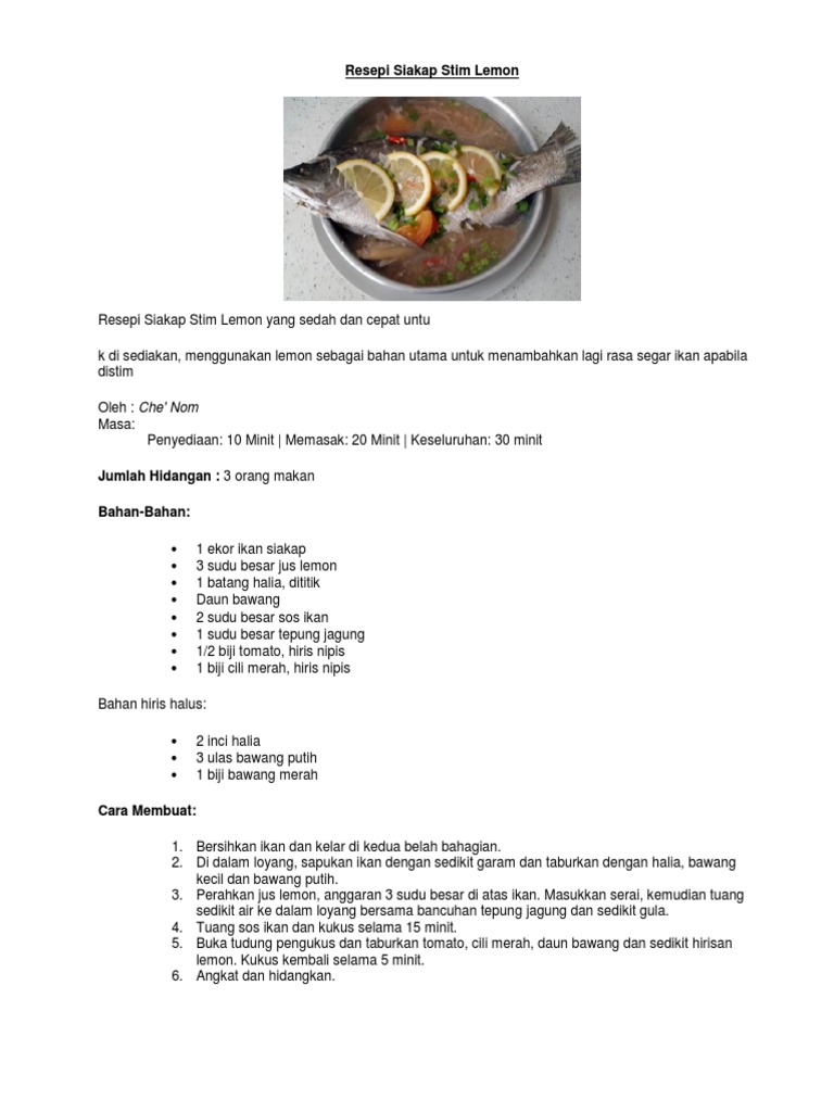 Resipi Siakap Stim Limau Phopbylinimohd Batch17 Oleh Cik Roshie Cookpad